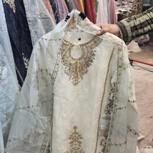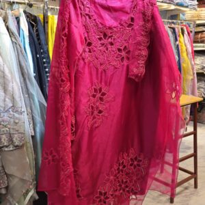 cutwork organza and chinon suit 818
