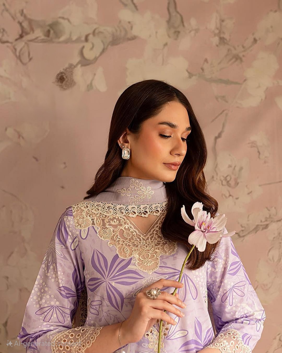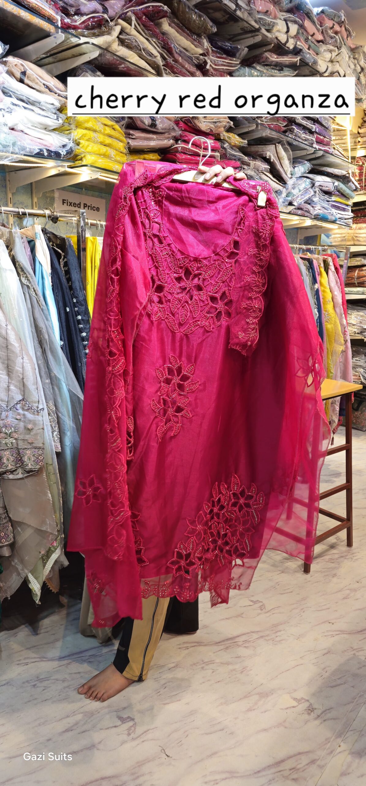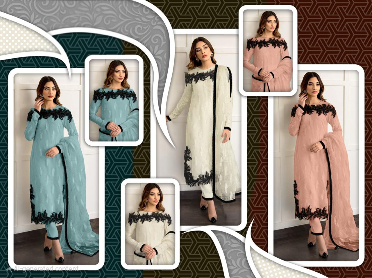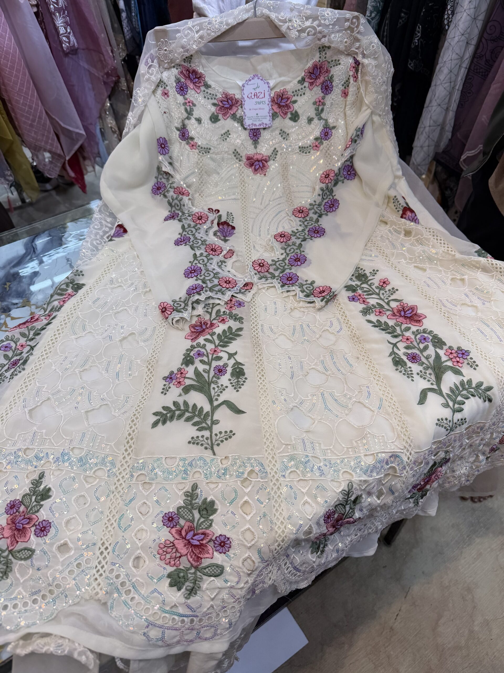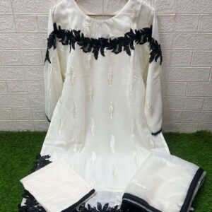 cutwork organza and chinon suit 818