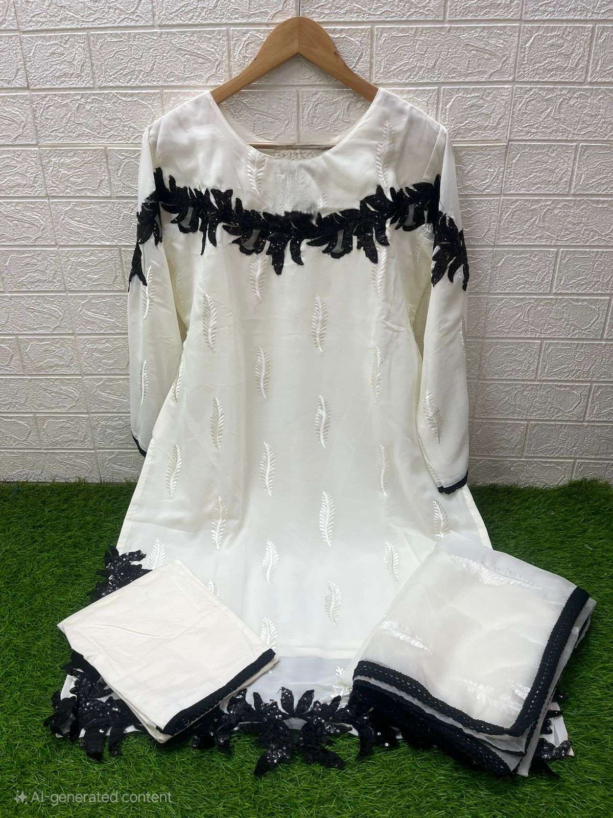 Cream & Black Unstitched patch work Cotton suit 144
