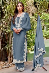 *Designer stylish Marbel Chiffon Fabric With Embroidery Tunic & Embrdry In Sleeve & Stylish Neck Pattern.. …..with Glamours *Gorgeous Looking In Kurti* … Designer Paired with *Embrdered In Dupatta & Embrdry In Plazo*